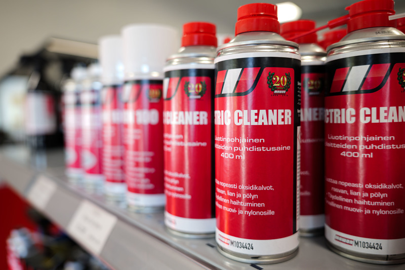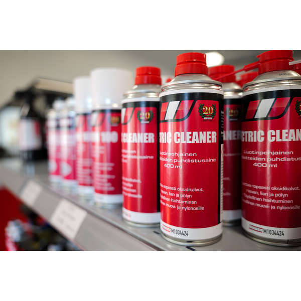 Elektroniikka- ja sähkölaitteille tarkoitettu puhdistusaine. Haihtuu nopeasti eikä jätä jäämiä pinnoille. Myös ajoneuvoelektroniikalle. Varastotuote.
