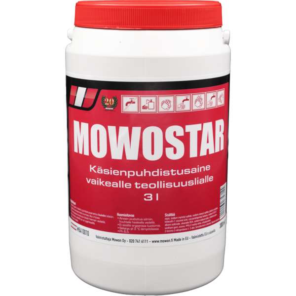 rasvaa ja musteita. Mowostar puhdistaa, kosteuttaa ja suojaa käsiä. Tuote on pH neutraali ja biohajoava.